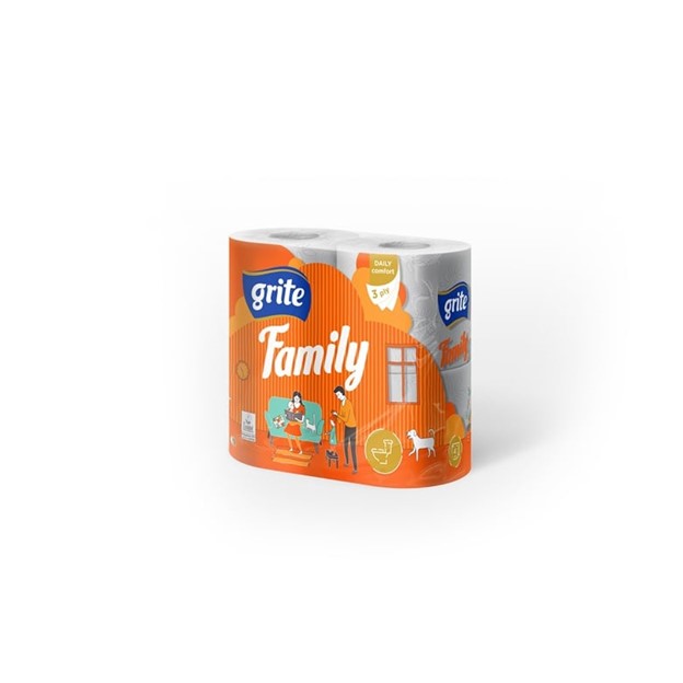 Grite Family 3-kihiline tualettpaber, 4 rulli pakis