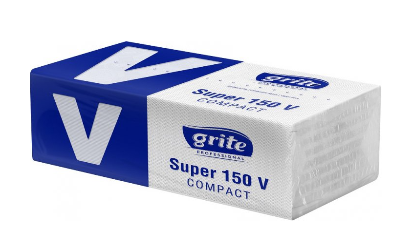 Grite Super 150V Compact lehträtikud, 150 lehte pakis, 20 pakki kastis. Kvaliteetsed ja kompaktsed lehträtikud igapäevaseks kasutamiseks.