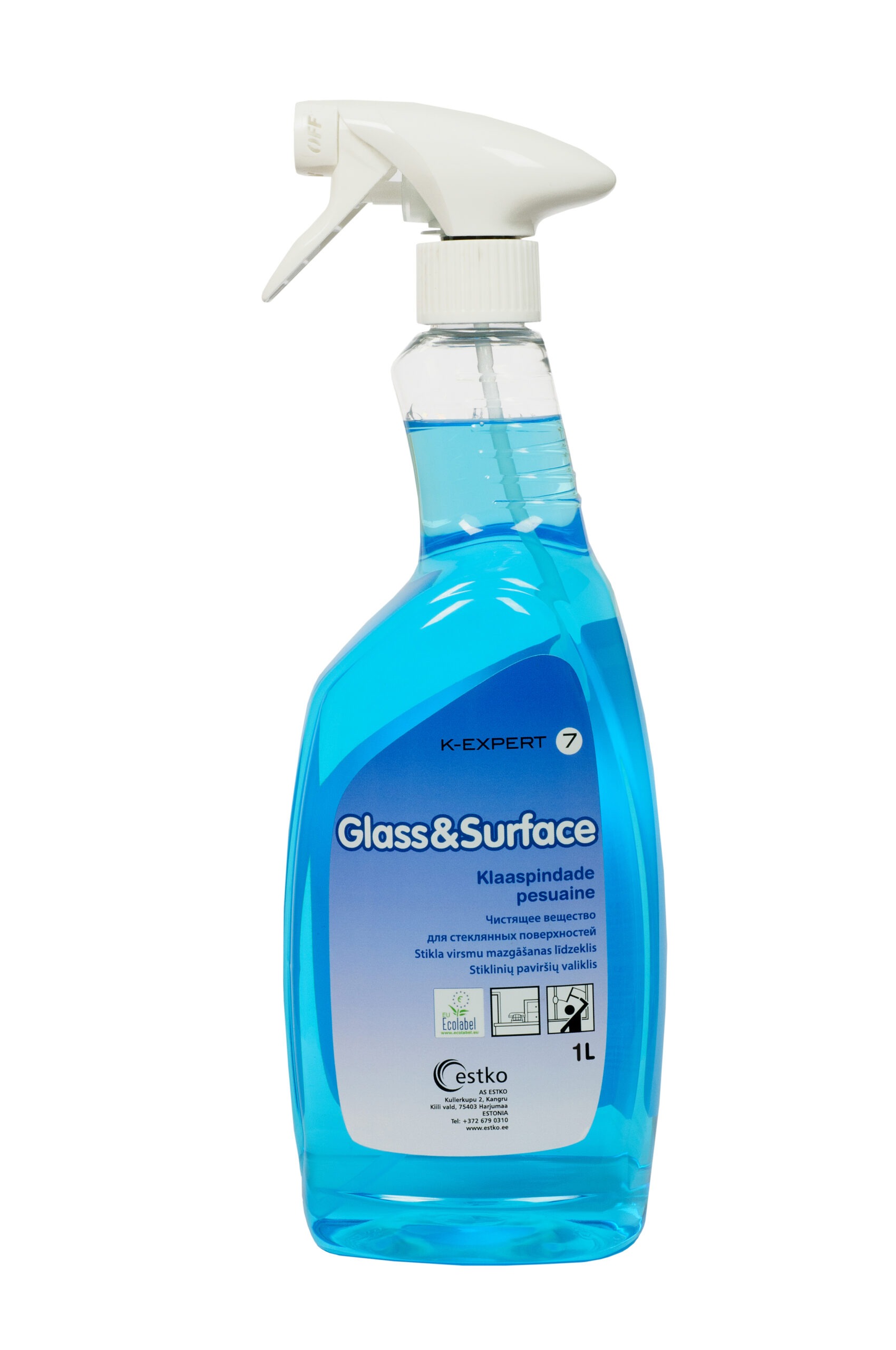 K-Expert 7 Glass&Surface klaaspindade pesuaine akna- ja ukseklaaside, klaasvitriinide, peeglite jt. klaaspindade puhastamiseks. Heade pesuomadustega vahend, mis kuivab kiiresti ilma jälgi jätmata. Eemaldab klaaspindadelt tolmu, näpujäljed jm mustuse. Omab ökomärgise (Ecolabel) litsentsi EE/020/001.