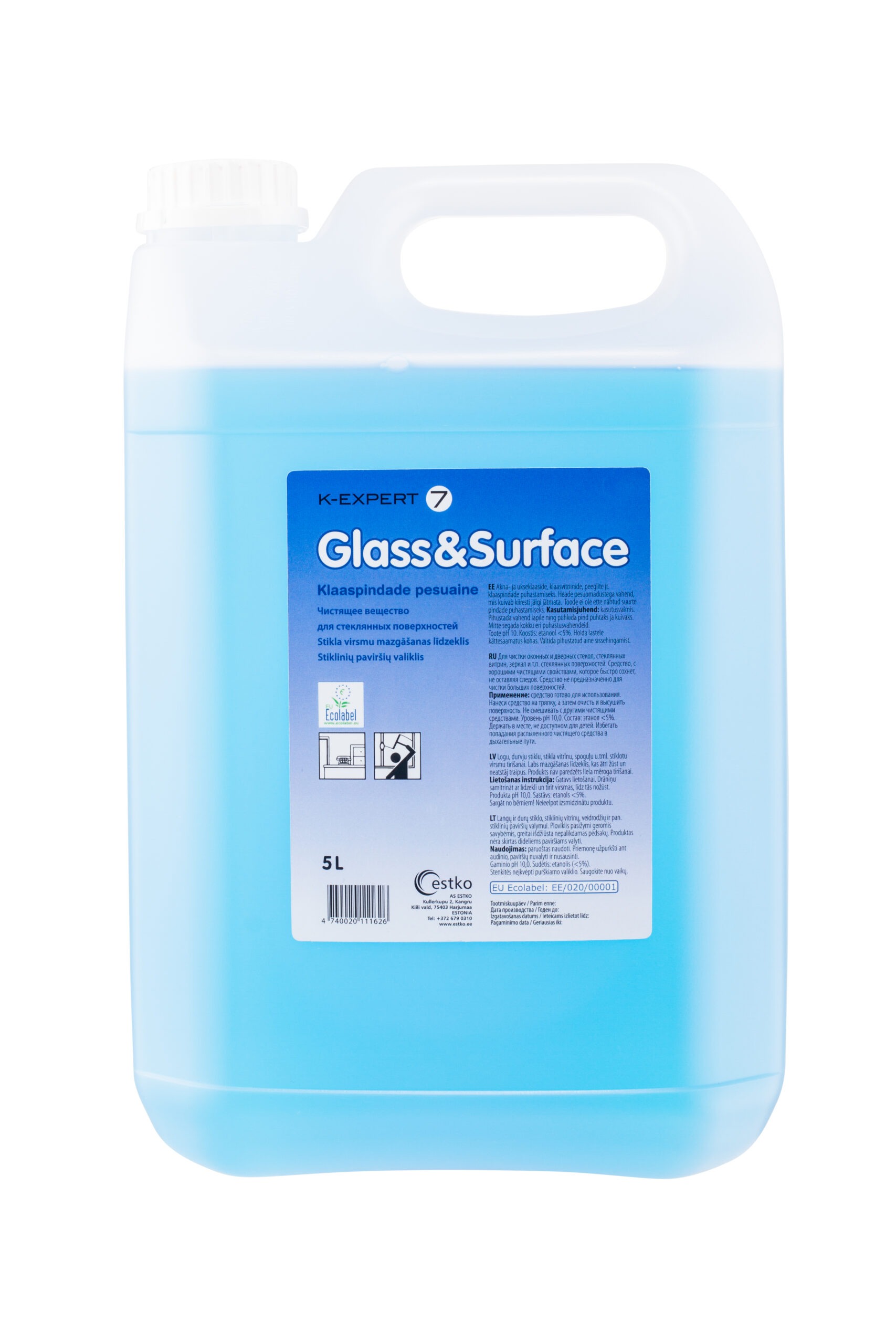K-Expert 7 Glass&Surface klaaspindade pesuaine akna- ja ukseklaaside, klaasvitriinide, peeglite jt. klaaspindade puhastamiseks. Heade pesuomadustega vahend, mis kuivab kiiresti ilma jälgi jätmata. Eemaldab klaaspindadelt tolmu, näpujäljed jm mustuse. Omab ökomärgise (Ecolabel) litsentsi EE/020/001.