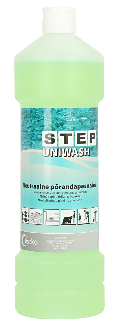 Vähevahutav antistaatiliste omadustega neutraalne pesuaine, mis sobib lakitud, õlitatud ja vahatatud põrandate, parketi, laminaadi, linoleumi, PVC-, klinker- ja kivipõrandate igapäevaseks pesemiseks. Sobib ka teiste vett-taluvate pindade puhastamiseks. STEP Uniwash on ülitõhus puhastusaine kõigi vett-taluvate pindade käsitsi- ja masinpesuks. Toode on neutraalne, ei kahjusta värvitud ja vahatatud pindu, linoleumi. Peale pesu jääb põrandale läikiv ja mustust hülgav kaitsekiht, nii et järgmisel puhastamisel on mustust lihtsam eemaldada.