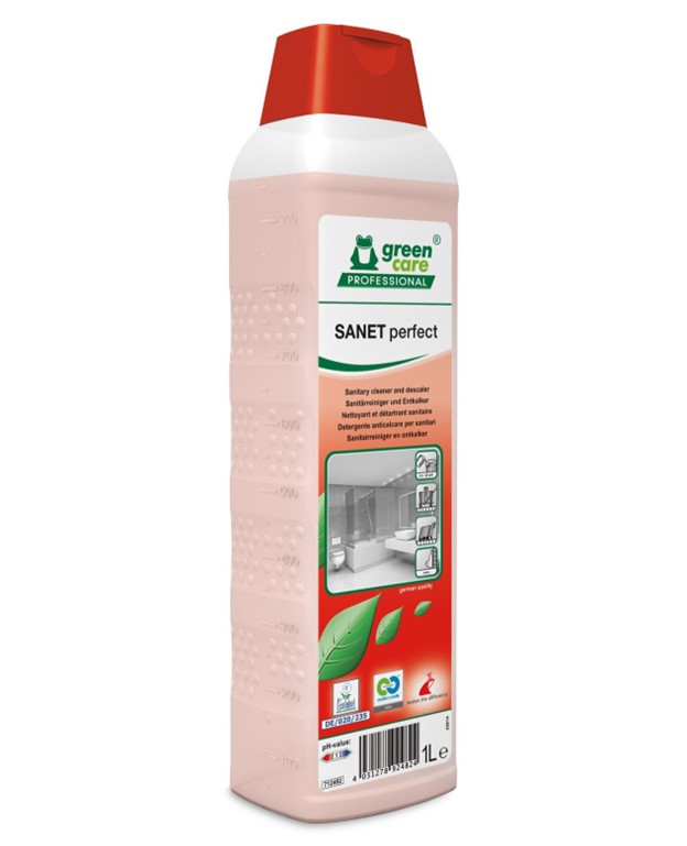 SANET perfect on keskkonnasõbralik tugev hügieeniruumide puhastusaine ja katlakivieemaldi. Bioloogilisi tsükleid järgiv toode on ohutu inimestele ja puhastustöötajatele. Uus patendiootel pindaktiivsete ainete ja hapete kombinatsioon vähendab tootekulu ja suurendab tõhusust. Valemi eesmärgiks on parimate tulemuste saavutamine juba esimesel kasutamisel ning puhastusaja ja -kulude vähendamine.Sobib kasutamiseks kõikidel happekindlatel sanitaaralade pindadel.